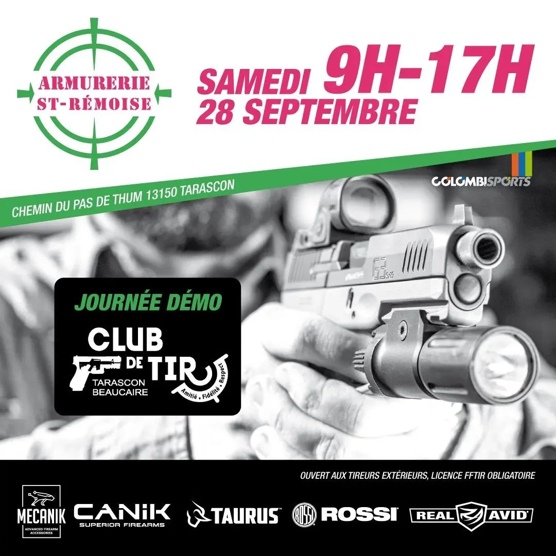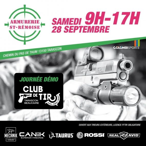 Journée démo avec la société Colombi sport Encadrée sous règlement du club et fftir. Licence obligatoire.Non stop 9h 17h au club de tir Tarascon Beaucaire. En partenariat avec l’armurerie Saint Rémoise. 28 septembre